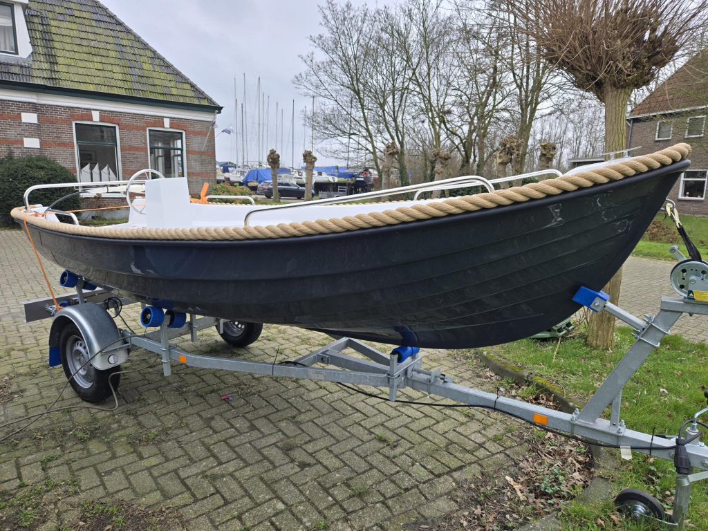 De nieuwe Amigo 430 Classic sloep staat hier op voorraad en is uitgevoerd met: