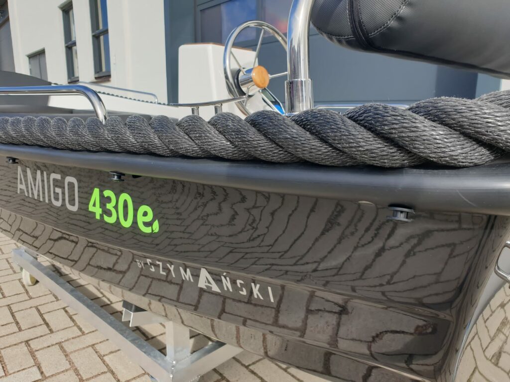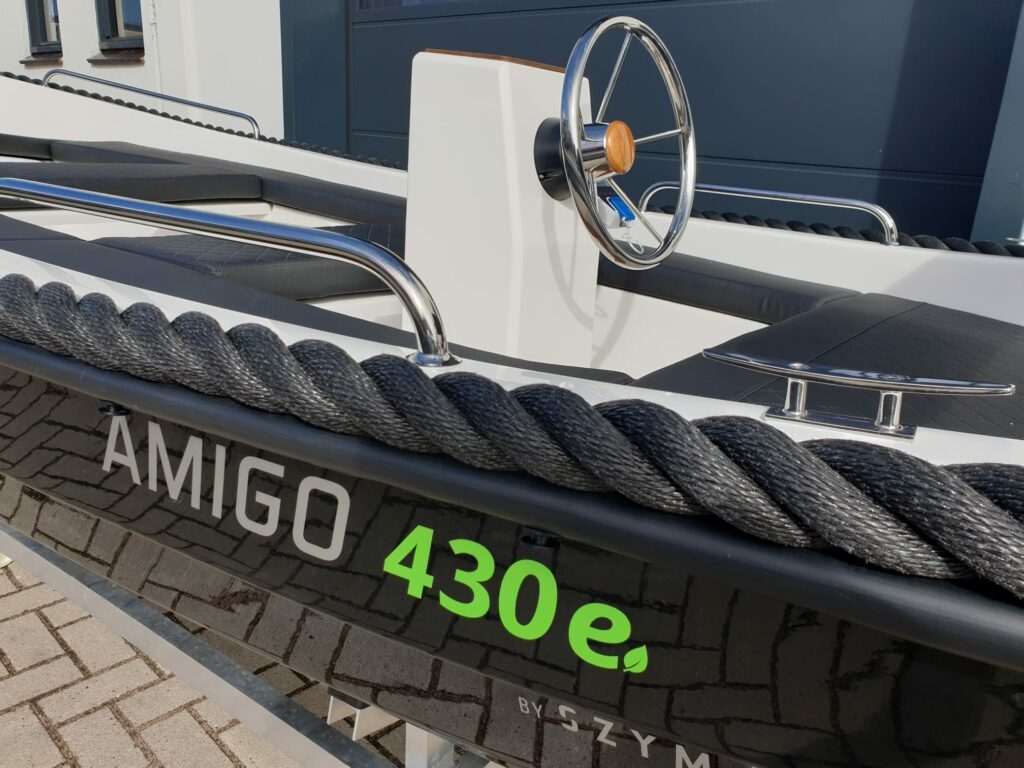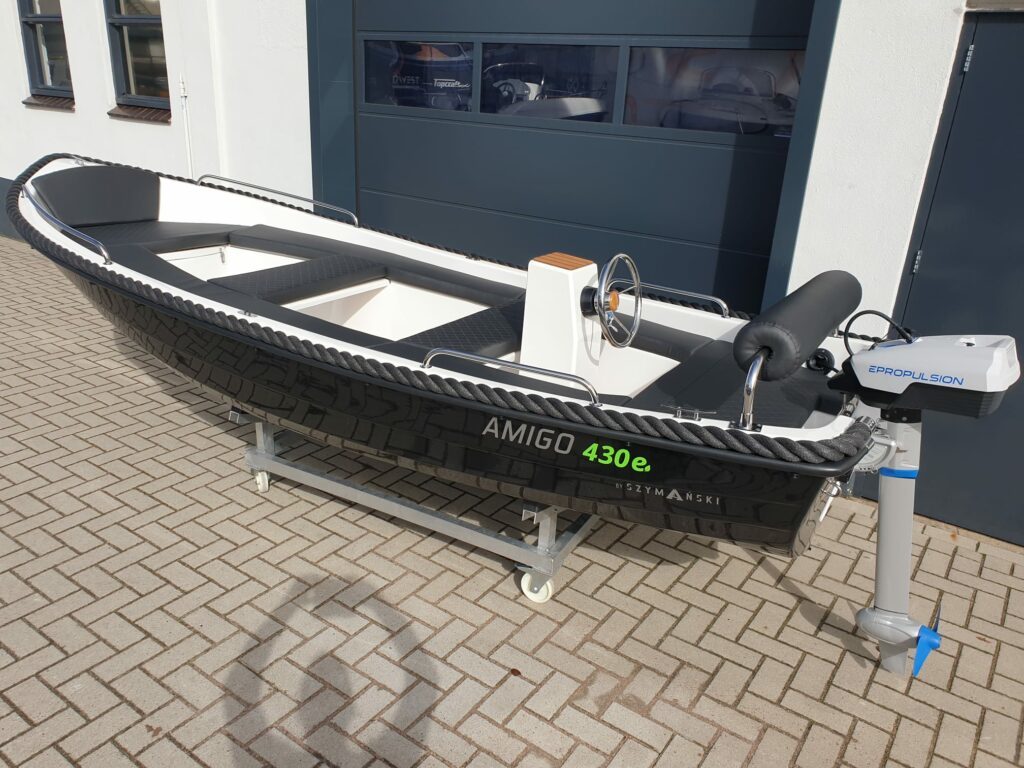Deze nieuwe elektro-sloep, de Amigo 430E met console & Epropulsion motor & geïntrigeerde accu is compleet & vaarklaar incl o.a. kussenset.