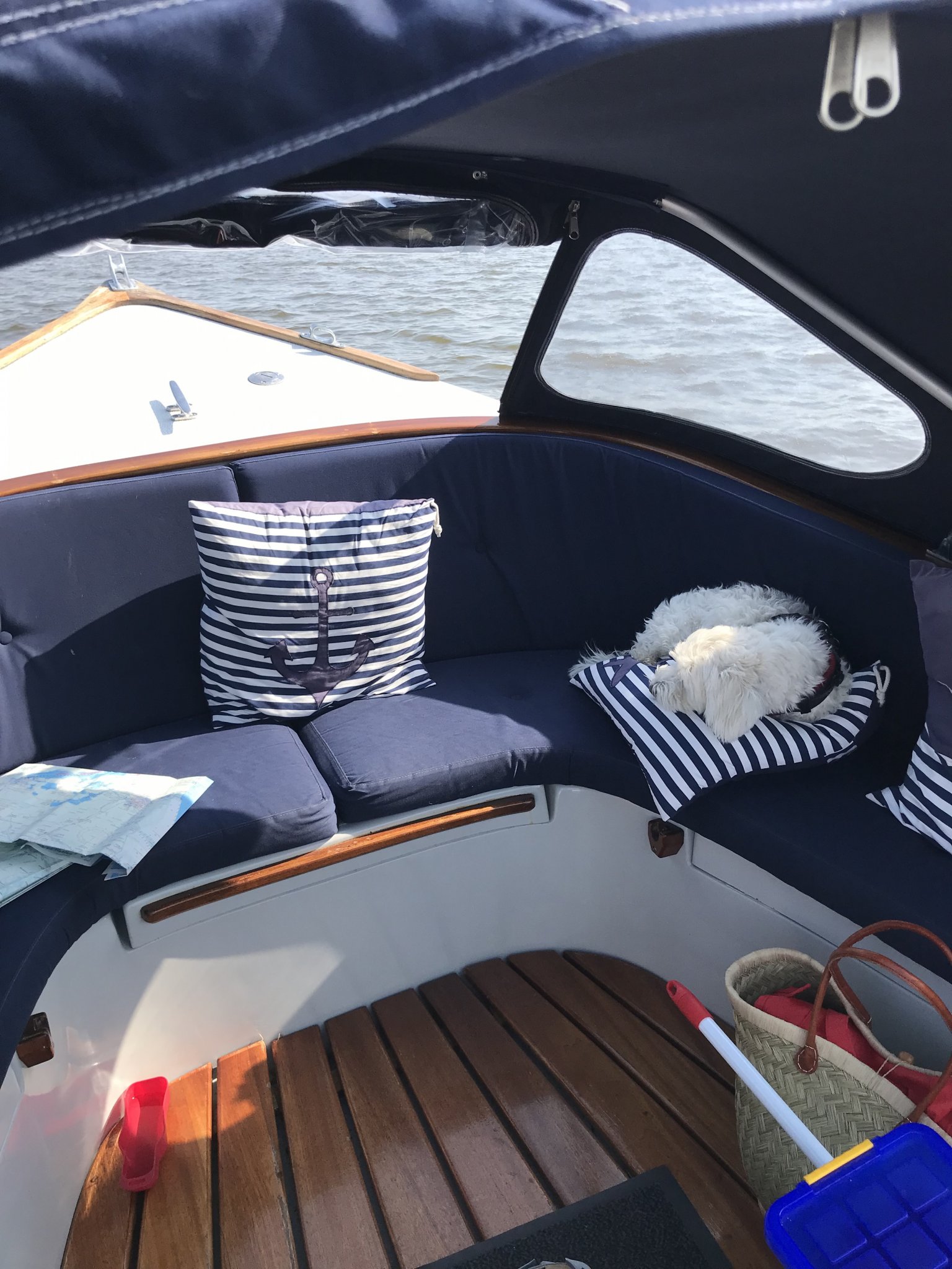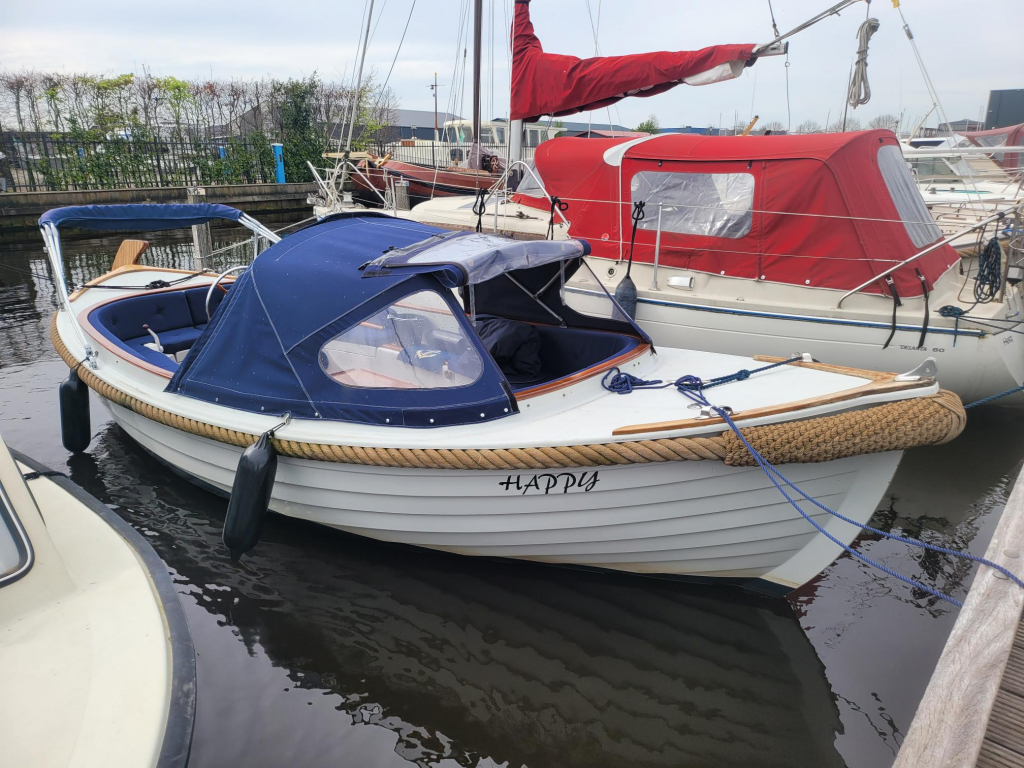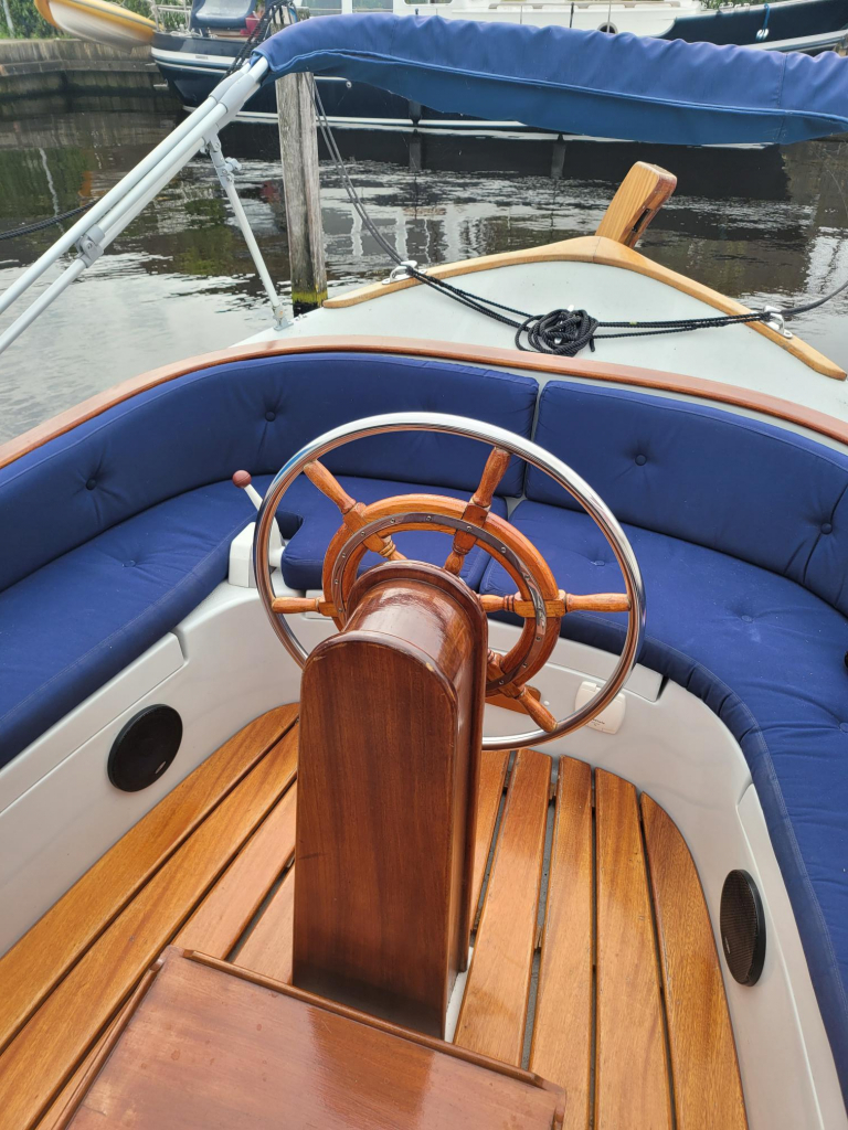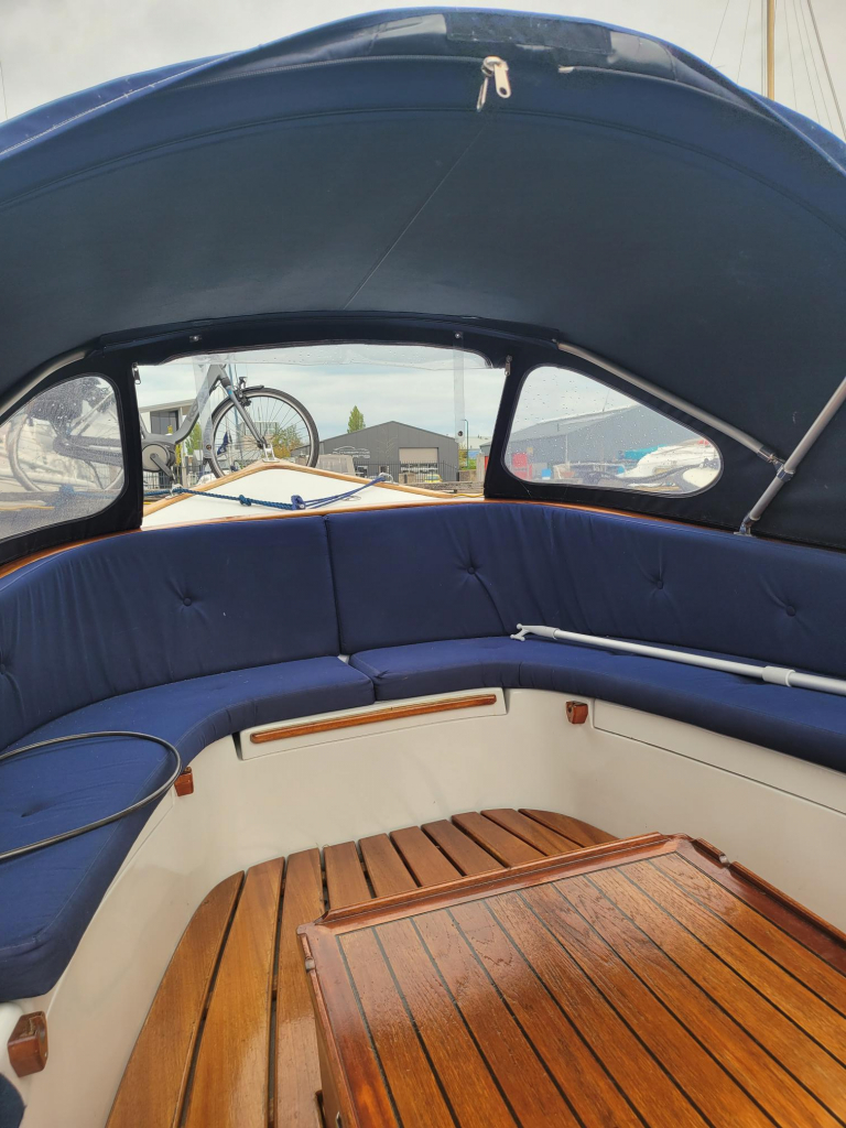 Goed varende en stabiele AW 21sloep (Arie Wiegmans) met Yanmar diesel, hydr. besturing, led verlichting, USB aansluiting, zonnebed, bimini, buiskap met afritsbare tent