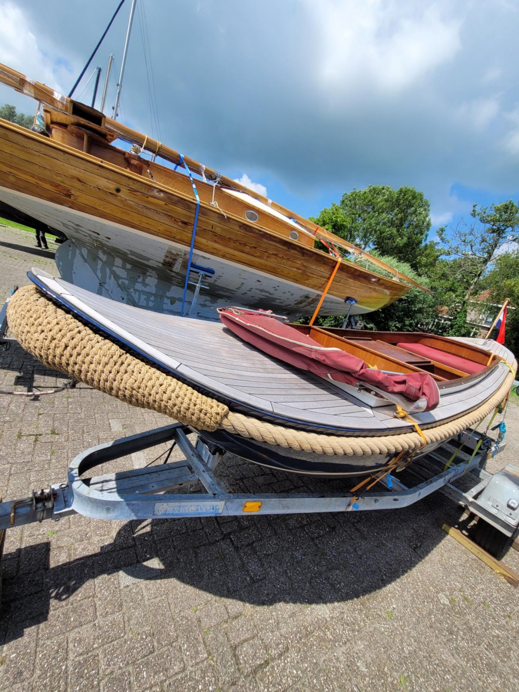 Unieke sloep (type kapiteinssloep?) met fantastische zeeg en recent vervangen teakdek (massief kwartiers 12 mm) uit de jaren 60 incl (stallings-) trailer. Sloep kan te water worden gelaten en gelij