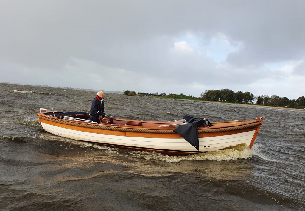 Een mooie sloep met klassieke lijn, overnaads gebouwd in prima conditie uit 2006 met diverse extra zoals bv een zwaardere motor (33 pk diesel) met weinig draai-uren, boegschroef, hydraulische besturing, veel teak & mahonie plus polyester romp. Verder oa. koelkast, toilet (chemisch), radio/cd speler, walstroom, navigatieverlichting, kompas, anker, reddingsvesten, buiskap met afritsbare tent, zonnedek, kussenset met rugkussens, kuipvloer massief teak.