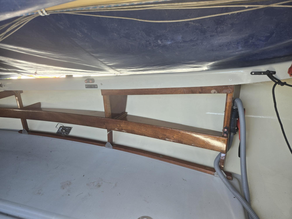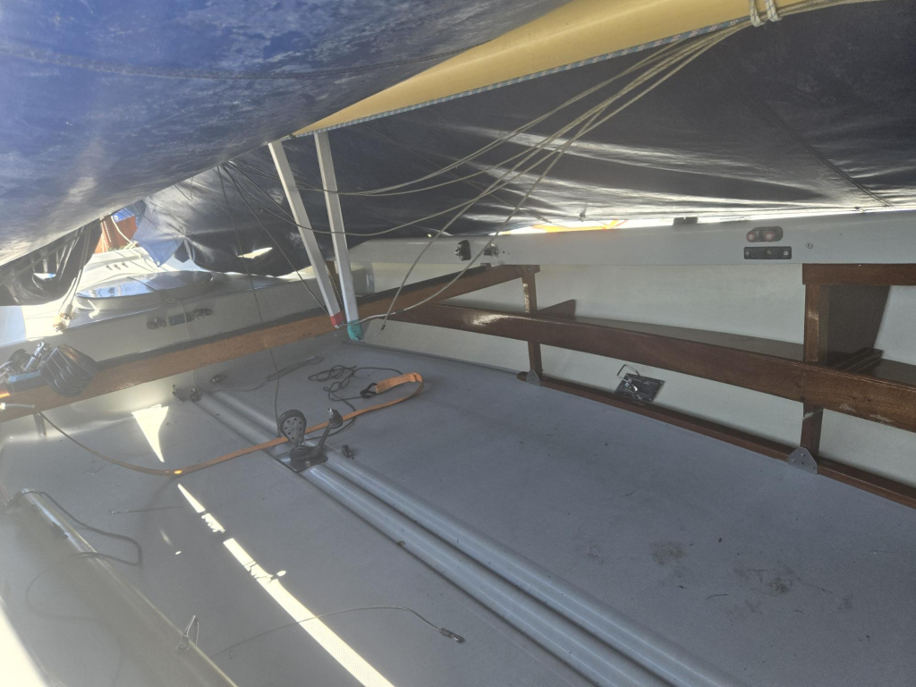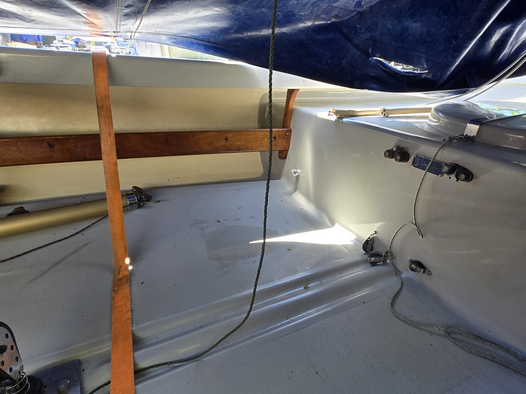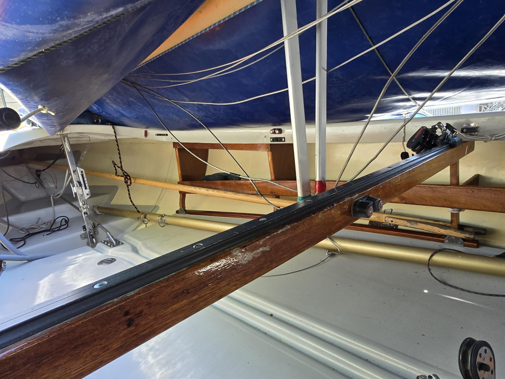 Deze Randmeer is zelflozend, roer met verlenger, 2x kompas op gangboord, nette zeilen (5x), recent gelakte houtdelen interieur, kuiptent. Voormalig wedstrijdboot (incl meetbrief). Voor tewaterlating heeft ze nieuwe antifouling nodig.