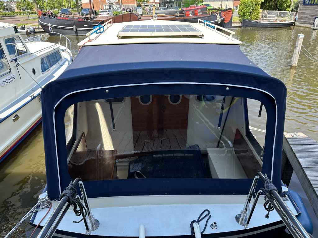 Onder andere met 4-5 slaapplaatsen, open kuip met nieuwe tent (2025), koelkast, verwarming, zonnepanelen, vuilwatertank, betrouwbare 55pk dieselmotor, boegschroef en diverse potten & pannen.